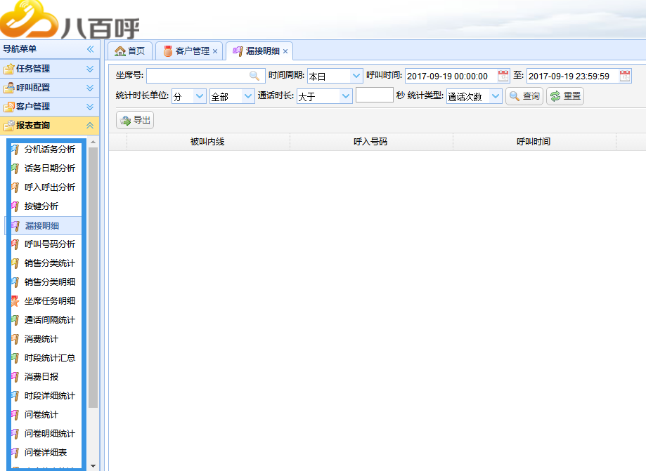 (四) 电话统计,漏接明细等